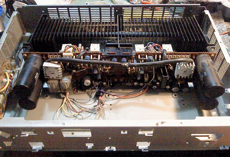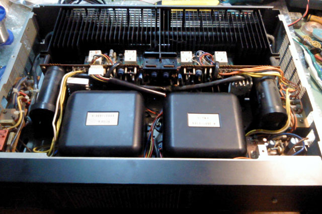 Da, to su upravo oni, originalni Hitachi lateralni MOSFET-i prve generacije u TO-3 kucistu, svi na broju i ispravni. Pojacalo ima po dva para po kanalu, sto je prava rijetkost za klasu pojacala do 100W, a jos cudnije s obzirom na firmu i pozicioniranje komponente na trzistu - u to doba ovo je bila doslovno najmodernija tehnologija, i Sanyo je u tome kasnio samo u odnosu na sam Hitachi. Nista, bas nista u izvedbi ovog uredjaja nije nepromisljeno i tu je svaki cent znalacki iskoristen do kraja - bocne su strane kutije istina od plastike, ali na tehnologiji i izvedbi se tu uopce nije stedjelo, bas obrnuto. Danas ovo podcijenjeno pojacalo vrijed vise od svoje trzisne cijene samo a konto lateralnih MOSFET-a u njemu, parovi se na eBay-u prodaju po cijenama do 80$.