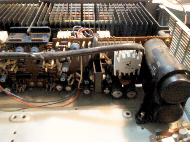 Bez prednje ploce, modula VU-metra (koji je iza aluminijske prednje ploce i ispred celicne sekundarne prednje loce, prekidaca za zvucnike na posebnoj ploci, te plocica s mreznim prekidacem i osiguracima, situacija izgleda ovako: