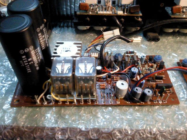 Razlika medju modulima postaje ocigledna, no odmah u oci upadaju filterski elektroliti vrlo cudnih dimenzija. Radi se o niskoimpedantnim ELNA-ma, koje su na zalost posve razlicite od danasnjih standarda i jednako tako poprilicno nezamjenjive. Uz to imaju i tri izvoda. To je jedan od glavnih razloga zasto je pojacalo otislo u reciklazu, potpuni refresh se ne bi isplatio upravo radi nabavke ovakvih kondenzatora, a uz to stanje kutije i nedotajuci gumbi i sl. cinili su uz tipicnu cijenu ovakvog uredjaja na eBay-u, refresh neisplativim - doduse, onaj tko zeli imati bas ovo pojacalo, nece biti razocaran sonicnim dometima, upravo obrnuto. Netko tko zeli zadrzati P55 'za stalno' lako ce opravdati cak i skupi refresh, za te novce nema pojacala koke mu se moze pribliziti, i tocka: