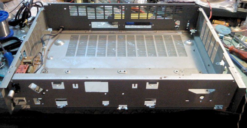Kutija je modularna, rastavlja se poput slagalice i dijeli mnoge dijelove s ostalim clanovima serije. Bocne strane su npr. posve iste za sve uredjaje iste visine, a ukupno su 3 visine uredjaja, aproksimativno jednake 1, 2, i 3 standardne rack visine. Dvostruki vijci prema prednjoj strani sugeriraju da je opcija za rack montazu bila ozbiljno razmatrana, ali koliko znam nije nikad implementirana...