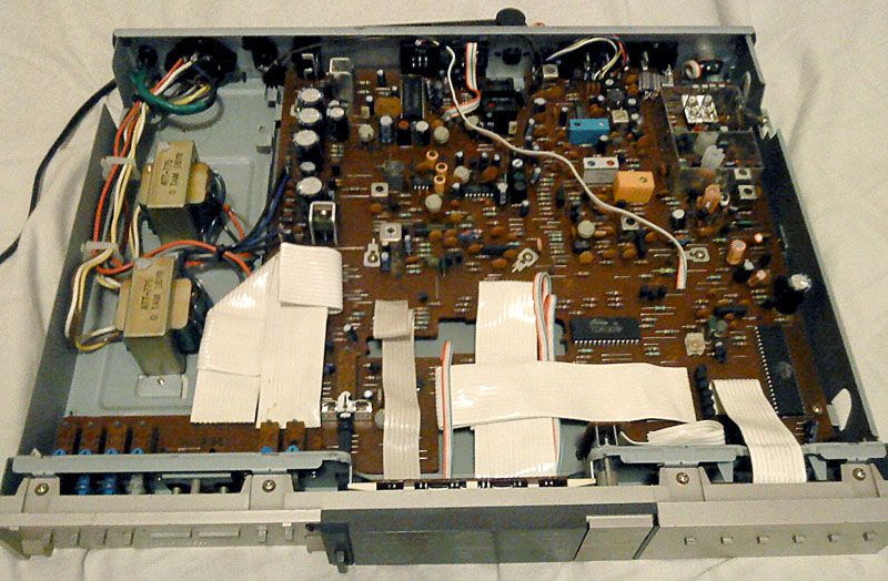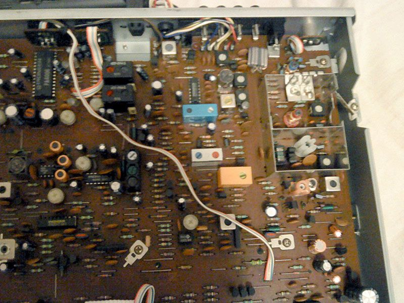A evo i poveceg preostatka: analogija. S desna na lijevo, cca. 1/4 ploce je FM front end, koji je zapravo kompletno izveden balansirano, tako da je klasicni balansirani na nebalansirani ulaz zapravo kompletno naopacke spojen, F konektor prolazi kroz balansni VF trafo 'naopacke' prema front endu. Neuobicajeno, to favorizira balansirani ulaz a ne F-konektor, no razlika je minimalno. Slijedeca cetvrtina prema lijevo je AM prijemnik, ponovno neuobicajeno velik i kompleksan, s obzirom da je to najcesce tek usputni sklop u vecini ozbiljnijih tunera, osim mozda u Sansui-ju TU-X1. Preostala polovica ploce prema lijevo je medjufrekvencija, demodulator i stereo dekoder. Zanimljiva je uporaba chipova specificnih za Pioneer - sami su razvili kompletan analogni chipset samo za ovaj tuner. Medjufrekventni stupnjevi imaju 4 keramicka filtera i dodatne LC filtere za korekciju, a posebna zanimljivost je sto je medjufrekvencija dvostruka, najprije standardnih 10.7MHz a onda se spusta na 1.26MHz i demodulira. Raslog ovakvom ustroju je nacin demodulacije - radi se o tzv. demodulatoru s akumulacijom impulsa, koji zapravo dorektno pretvara FM signal u PDM, tj. modulaciju gustocom impulsa. Impulsi se akumuliraju u filterima i time dobivaju finalnu analognu formu. Prednost ovog nacina demodulacije je velika tocnost, tj. mali rezidualni shum i odlicna lineranost. Tipicni faktori izoblicenja za klasicne diskriminatore su iznad 0.1% a odnos signal-sum rijetko iznad 70dB, dok se ovakvim pristupom postize 10 puta manje izoblicenje i 10-15dB veci odnos signal-sum. Kvaliteta signala iz ovog prijemnika u pravilu nije usko grlo, ono sto cete slusati bit ce onoliko dobro koliko je dobar signal prema odasiljacu, i koliko je kvalitetan odasiljac. Inace, tuneri koji upotrebljavaju ovaj princip su prilicno rijetki, uglavnom marke Kenwood i Accuphase.