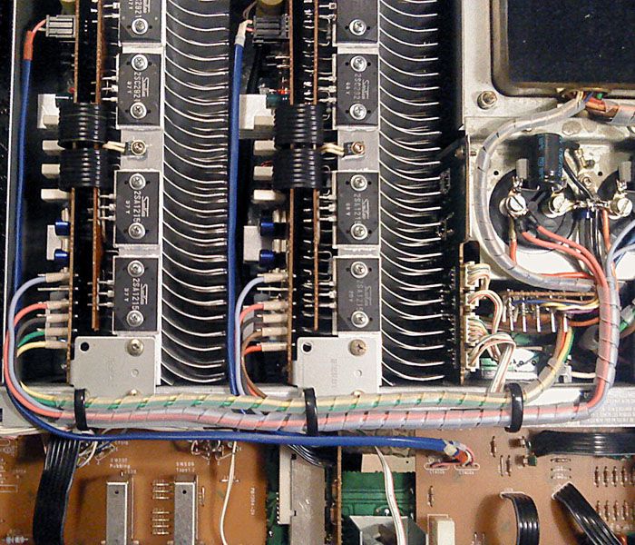 Ton kontrole su prosle 'undo' modifikacije, a sklopka je nakon poprilicno povuci-potegni sastavljena nazad na kup i potpuno ispravno radi. Inace bih volio znati kako ih slazu u tvornici jer ovako na ruke je da poludis... Krajevi plavih koaksa su dobili nove konektore. Tko pazljivo gleda vidjet ce da je raspored izvoda razlicit za lijevi i desni kanal - u originalu su kablovi tako zalemljeni na polcicu.