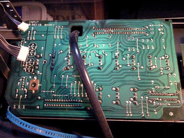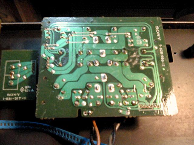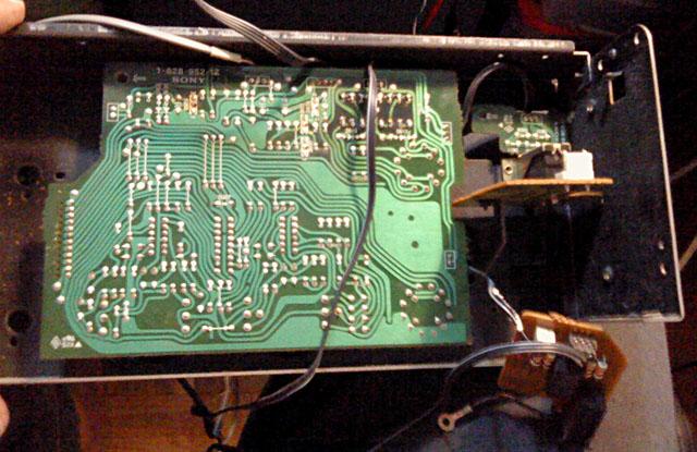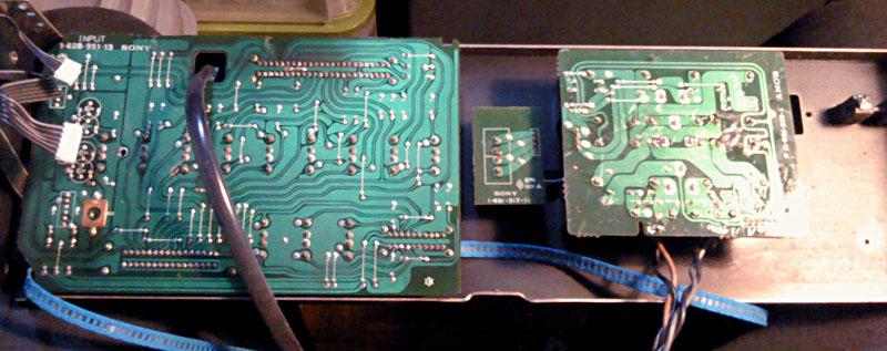 Posebno je zanimljiva ploca s potenciometrom glasnoce - i ona pocinje svoj zivot u jednoj ravnini. Tri komada su spojena jumperima. Komadi se kasnije rastave po perforaciji i sve skupa se preslozi kao origami u tri ravnine. Zanimljivo je da niti jedan program za projektiranje stampe za koji znam ne daje nikakvu pomoc za automatiziranu izradu ovakvih stampanih ploca, nego se to mora sve proracunati na ruke. Doduse, izgled Sony stampe je prilicno razlicit od bilo kojeg drugog, vjerojatno radi toga jer koriste svoj vlastiti software, koji razvijaju doslovce desetlijecima. u tome inace nisu jedinstveni, radili su to i drugi proizvodjaci (Yamaha, npr.).