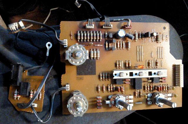 Slijedeci korak je zapravo srce pojacala. Bocna plocica na sebi krije phono sekciju i kompletan front-end pojacala. konstrukcija je, kao sto je tada bilo polularno, bez pretpojacala, vec se radi o izlaznom pojacalu velikog pojacanja s 'pasivnim pretpojacalom' na koji je dodatno prikljucen phono pred-stupanj. Na prvi pogled topologija nije nista posebno, premda ima zanimljivih trikova. Phono preamp primjerice koristi dobro poznati OPamp NE5534, ali s dodanim FET ulazom i diskretnim MC pretpojacalom. Na drugi pogled postaje jasno da se ipak radi o jednoj jako ozbiljnoj izvedbi,kada se obrati paznja na izvedbu napajanja i masa. Pogled na plocu krije jos pokoje iznenadjenje u vidu kondenzatora u phono stupnju, i odabranih otpora. Zanimljivo je da su svuda osim u pozicijama velike snage, karbon film otpori, poznavatelji ce vjerojatno prepoznati i firmu. Ukupni utisak jedino kvari izvedba na pertinaksu, no to je tada bio standard.