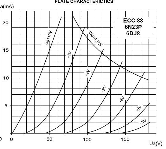 e da ja imam datasheet jedne ecc8 od philipsa i graf joj je ne različit nego totalno različit od ovog tvoga. Znam da se iste cijevi razlikuju ali baš toliko mi ne ide u glavu. Na tome grafu ima napon katode do -10V, Ua do 350V i Ia do 100mA.