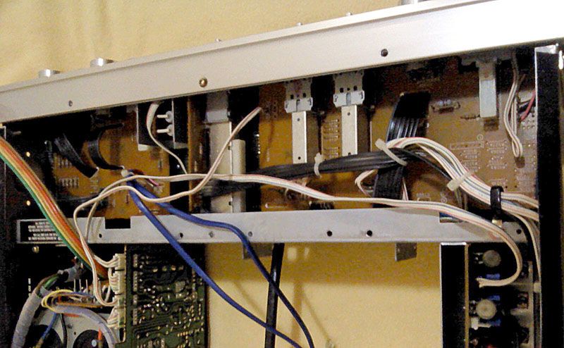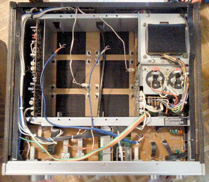 Cijela sekcija ton kontrola je maknuta jer je treba od-modificirati u originalno stanje - umjesto nje trenutno zjapi supljina, no srecom ta je sekcija posve pasivna i spaja se s ostatkom pojacala samo s dva oklopljena kabela.