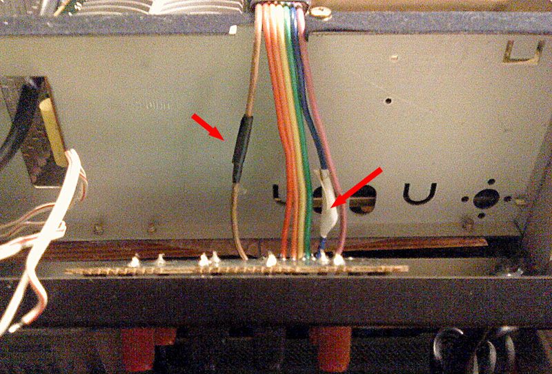Pogled s gornje strane osim supljine gdje dodju ton kontrole, otkriva par detalja koje treba rijesiti - sajla preklopnika ulaza je skinuta, jer postoji ozbiljan problem na drugoj strani (vidjeti nize), a ova zica u donjem desnom kutu ima na kraju zaruljicu koja ce vjerojatno biti zamijenjena s LED kompatibilne boje, radi trajnosti i zagrijavanja. Osim toga, netko j einako podrapao silikonske 'gace' tako da svjetlo ne bi bilo odgovarajuce boje.