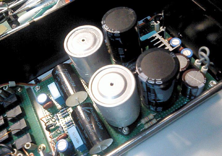Cijevi je malo teze uociti s obzirom da su u aluminijskom oklopu. Ispravljacki dio je na gornjoj slici lijevo od cijevi (vide se veliki elektroliti za filtriranje) a desno od cijevi je prakticki sva ostala pasiva.