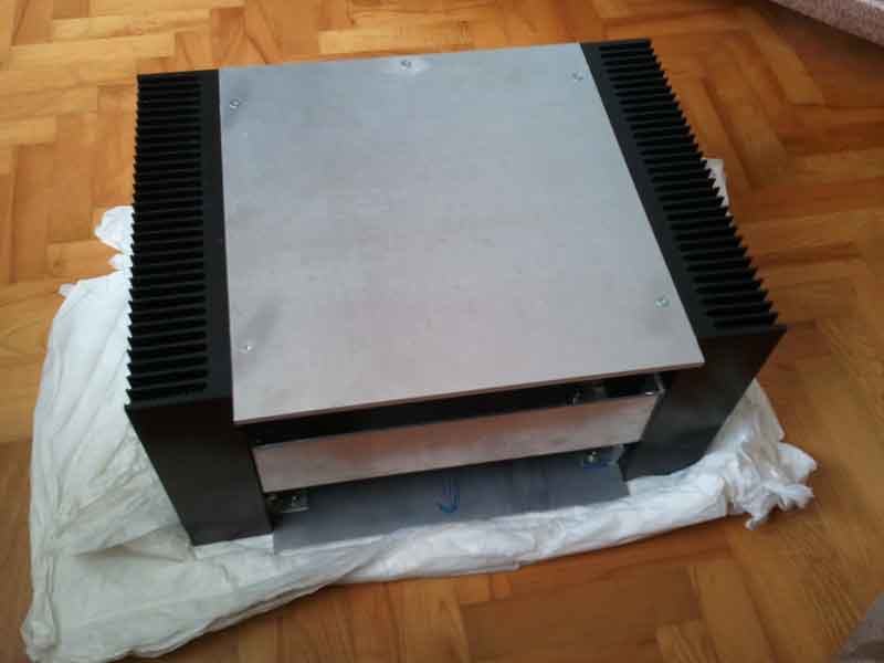 Samo kućište pojačala izrađeno je od dva hladnjaka , aluminijskog lima debljine 8 mm za gornju i donju stranicu , lima debljine 2mm na stražnjem dijelu pojačala zbog dužine vijaka buksni i konektora , prednje strane od mramorne ploče debljine 3 cm , vinkla i prečki koje drže pojačalo na okupu .
