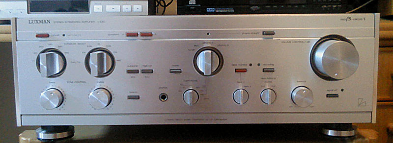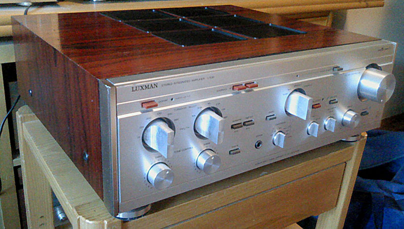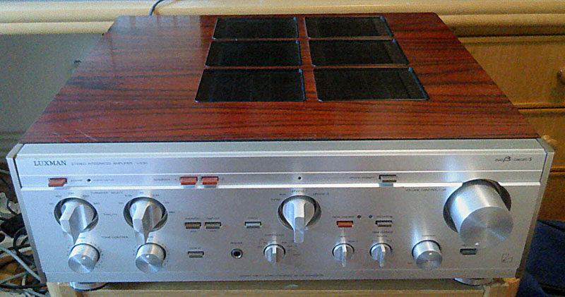 Pojacalo je inace gotovo legendarni model s high-bias class AB izlazima, koji je na mnogim trzistima bio top-of-the-line integrirac, osim tamo gdje se prodavao jos legendarniji i puno puno rijedji i jos skuplji L-550, iz kojeg je kasnije nastala cijela serija Luxman integriraca s opcijom rada u klasi A, koja se proteze i do danasnjih modela. Mreze za hladjenje na drvenom kucistu otkrivaju prirodu ove zvjeri - ispod se nalaze tzv. skim-fin hladila s po 2 para NEC RET-ova, koji cine izlazni stupanj deklariran na 120W u 8 ohma, s visokih 250mA struje mirovanja za prvi watt u klasi A. Cijena toga je gotovo 60W disipacije za oba kanala zajedno :)