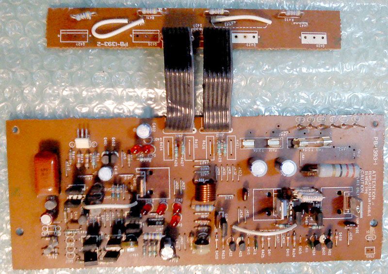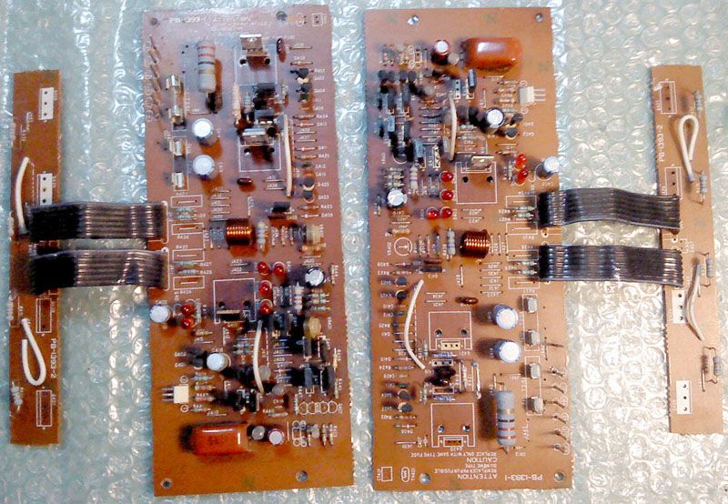 Na prvi pogled ne izgleda toliko problematicno no ima podosta dijelova koji fale, ili kojekakvih zakrpa. Sva sreca, stampa nije previse 'izjahana' osim oko jednog tranzistora na modulu 1, no to ce se dati zakrpati. Na zalost fale hladila s drivera, na jednom modulu i 4 komada 2SK170, nesto TO126 i TO220 tranzistora, netko je umjesto ultra-brzog japanca za 200V probojnog napona stavio BD139... sve ce trebati pazlivo provjeriti. Lako je moguce da vecina poluvodica bude zamijenjena preventive radi, tko zna sto se sve s njima dogodilo. Izlazni tranzistori su cak i dosli u kompletu, no od 8 komada 5 se pretvorilo u troizvodni kratkospojnik. Obdukcija je pokazala da su neki 'zamjene' - ne bas fake s obzirom da je kristal cak i odgovarajuce velicine, no definitivno inferiorna konstrukcija u odnosu na Sanken-e koje su glumili.