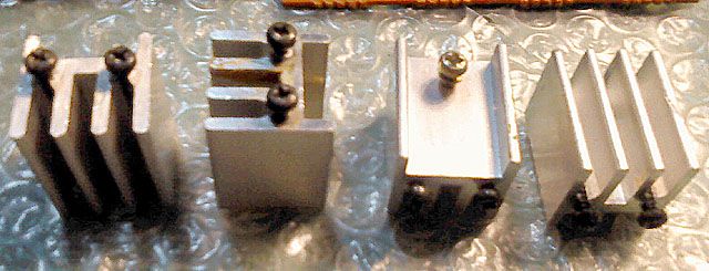 Slicna je prica i sa trimer potenciometrima za struju mirovanja i DC offset - ispostavilo se da je prakticki nemoguce naci stajace trimere s kompatibilnim rasporedom izvoda. Srecom, po ladicama su se nasli kvalitetniji stojeci trimeri s duljim izcodima, tako da su postavljeni pod 45 stupnjeva, taman da se mogu doseci stimalicom. Razlog za ovo ce postati jasan nesto kasnije, moduli se pricvrscuju direktno na sasiju a ne na hladila, i to onim famoznim 'japanskim' plasticnim tiplama, koje su, za svaki slucaj, nesto vecih dimenzija nego sto je uobicajeno. Nabavka istih se umalo pretvorila u manju dramu, da bi se na kraju pokazalo da se itekako isplati cuvati kojekakvo elektronsko 'smece' - bez njega nema sanse da bi se ovaj problem lako rijesio.