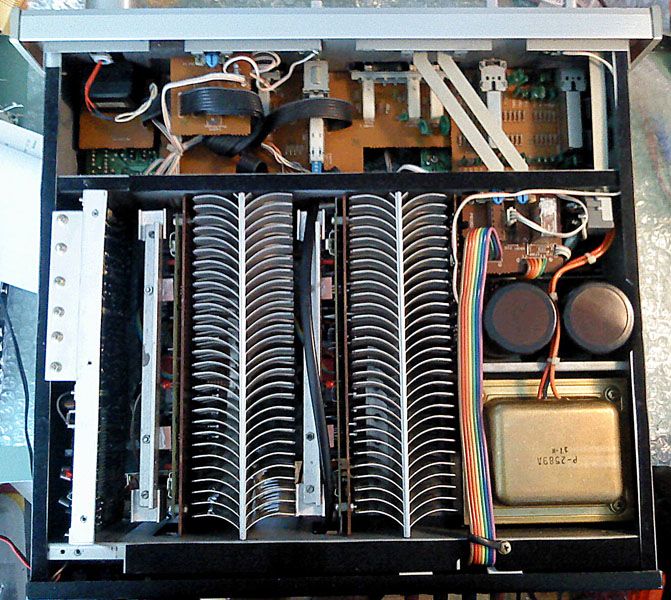 Kao sto se vidi, dosta je toga zamijenjeno, i dodani su dijelovi koji su nedostajali. Dio price koji se ne vidi je nabavka dijelova dostojnih ove konstrukcije - original koristi iskljucivo silver mica i polistirenske kondenzatore, s uzuzetkom jednog bipolarnog elektrolita. Nakon dosta razmisljanja kombinacija tog bipolarca, folije od 1uF i polistirena 1.5nF je zamijenjena s jednom Iskra NOS folijom od 6.8uF u paraleli s neinduktivnom folijom 1.5nF. Manji polistireni su zamijenjeni silver-mica tipovima, a preostala dva neinduktivnim filijama drugacijeg tipa. Naime, oba se polistirena u originalu nalaze pored dijelova koji se prilicno zagrijevaju i na njima je to ostavilo traga. Oba se nalaze u dijelovima sklopa koji ne zahtijevaju superlativne karakteristike polistirena, vec samo neinduktivnost. Ovakvo razmisljnaje mozda izgleda cudno, no ovo pojacalo je topoloski poprilicno osebujno, pogotovo uzevsi u obzir vrijeme kad je nastalo. Iskusno oko ce na shemi vidjeti izuzetnu paznju posvecenu kompenzaciji, kako bi se ocuvala maksimalna linearnost i sirok frekventni opseg PRIJE aplikacije povratne veze, koja je i sama prilicno neuobicajena (Duo-beta-S sustav svojstven Luxman-u). Svaki moduli ima samo 5 elektrolitskih kondenzatora, od kojih su samo dva u nekom putu signala, i to kao lokalni decoupling za izlazni stupanj. Preostala tri blokiraju LED reference za strujne izvore i kaskode.