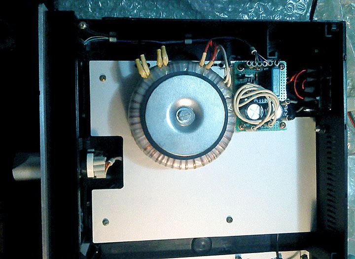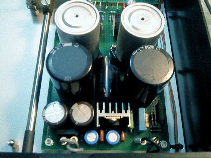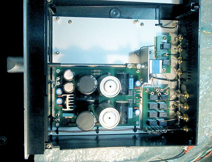 Izmedju ostalog, ovaj sklop sadrzi i ispravljac za pogon releja i drzi ih ugasenima cca 90 sekundi od ukljucenja. Indikacija je rijesena s dvobojnom LED, koja je inicijalno crvena, pa prelazi kontinuirano u narandzastu kako protice 90 sekundi, i na kraju se nakon ukljucneja releja prebaci u zeleno. Na zalost prilicno je tesko uslikati to, mobitel bilo sto crveno registrira kao nesto jako svijetlo, gotovo bijelo, pa su slike ispod tek aproksimacija:
