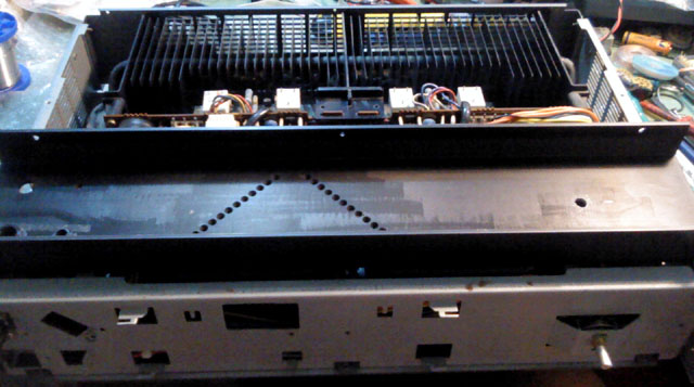 Na zalost konkretni primjerak je kupljen za citavih 9 Eur plus prevoz, kao neispravan, s idejom da se reciklira u dijelove. Na aukcijskoj slici je izgledao neugledno, zmazano i izrabljeno, no kada je stigao u moje ruke, pokazalo se da mu je stanje zapravo znacajno bolje nego sto bi slika dala naslutiti, a dodatno je iznenadjenje bilo sto je uredjaj zapravo bio ispravan, premda 'tweakan' nestrucno. PPM metar, prekidac zvucnickih parova i ostale sitnice su ipak vidjele bolje dane, s time da prekidacu za zvucnike nije bilo spasa. I tako j euredjaj stajao na mojoj hrpi, ocekujuci odluku o svojoj sudbini. Ona je stigla prije par dana, i razlozi za nju ce biti jasni kada stavim nesto postova u rubriku refresh. Za sada, koliko se god to mozda cinilo perverznim, eto slika s operacije reciklaze, koje zorno pokazuju da s ovim neuglednim uredjajem nema sale!