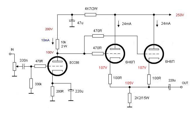 Od anode Ecc88 prema katodi 6S19p stavi u seriju 2-3K i 1n4007 da ti prilikom zagrijavanja lampi sve dok