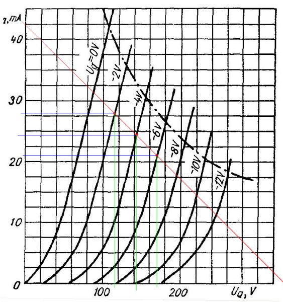 Evo podataka za radnu točku 145V/24mA. Pojačanje je 13,75; radni otpor je 7857(8,2k/15W); katodni 166(180/0,5W);napon napajanja je oko 340V