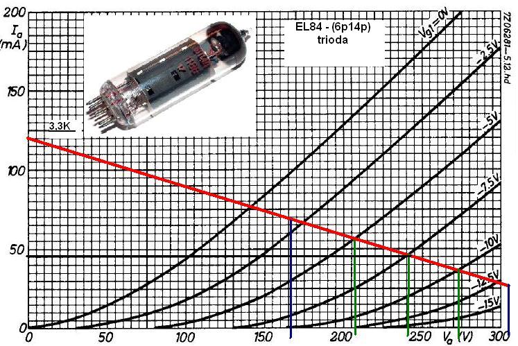 a EL84 u radnoj točki 235V/45mA/3,3K tereta – pojačanje od 12-13x. Uz klasičnu opciju biasa putem katodnog otpora,