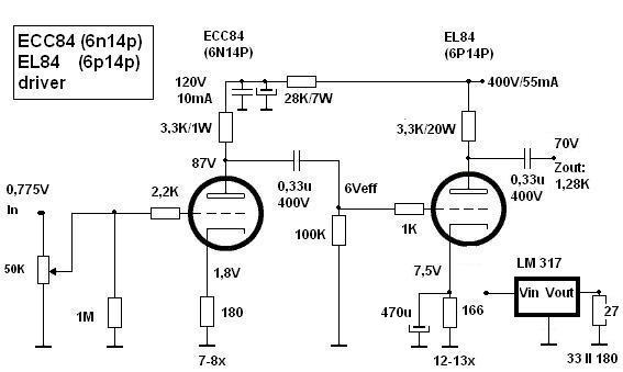 Radi se o općepoznatoj pentodi EL84 u triodnom spoju, a ispred nje ECC84. Dakle, obje su 84-ke.
