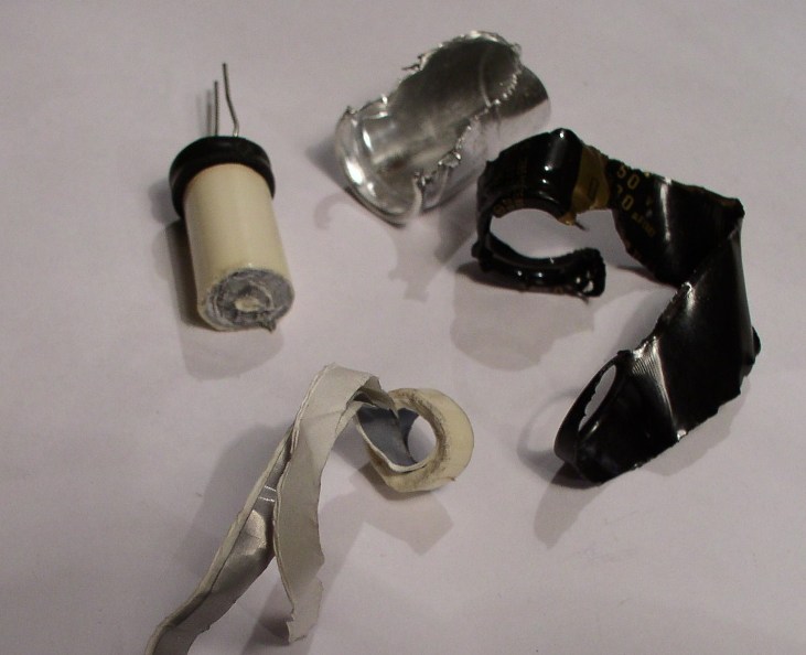Može se vidjeti da je elektrolit zapravo nježna bijela tkanina. Po tome bi se možda dalo zaključiti da su kondići ipak orginal.