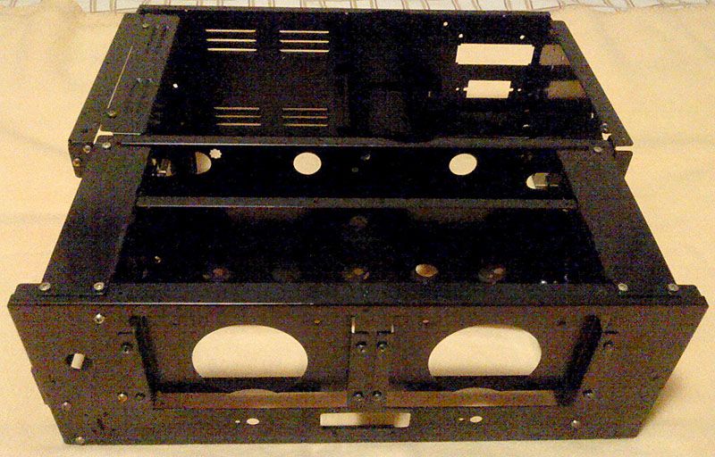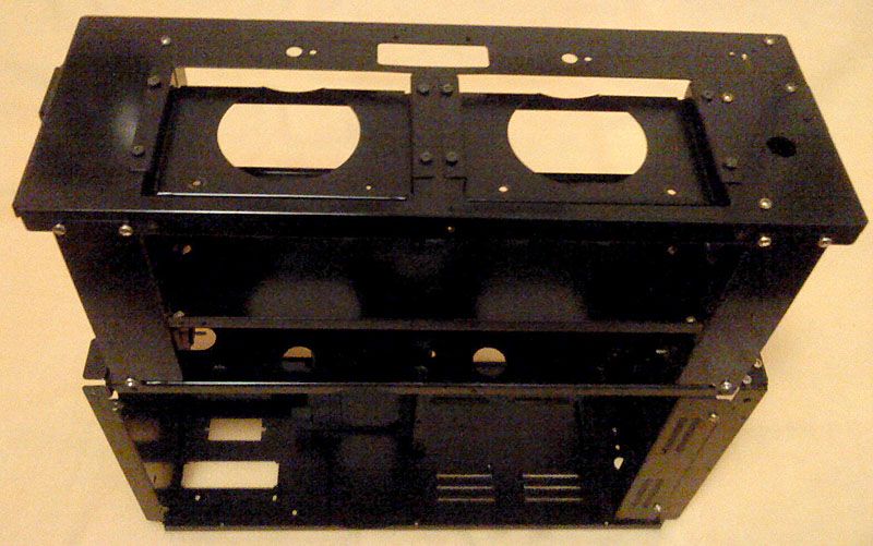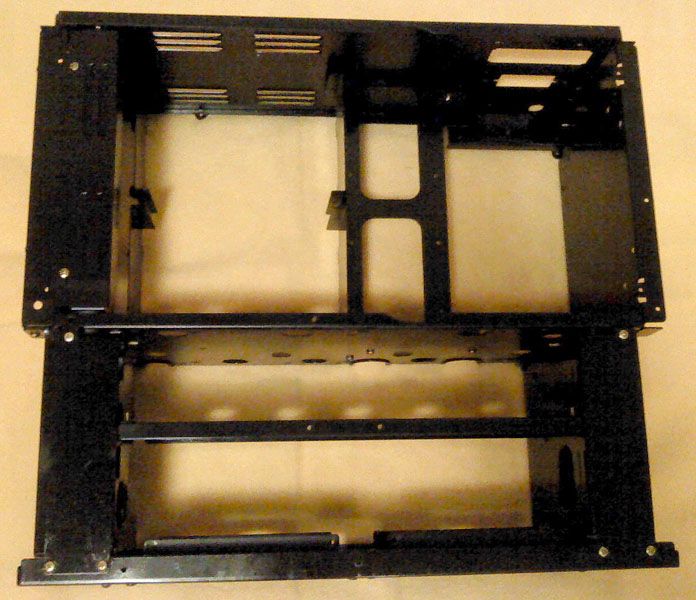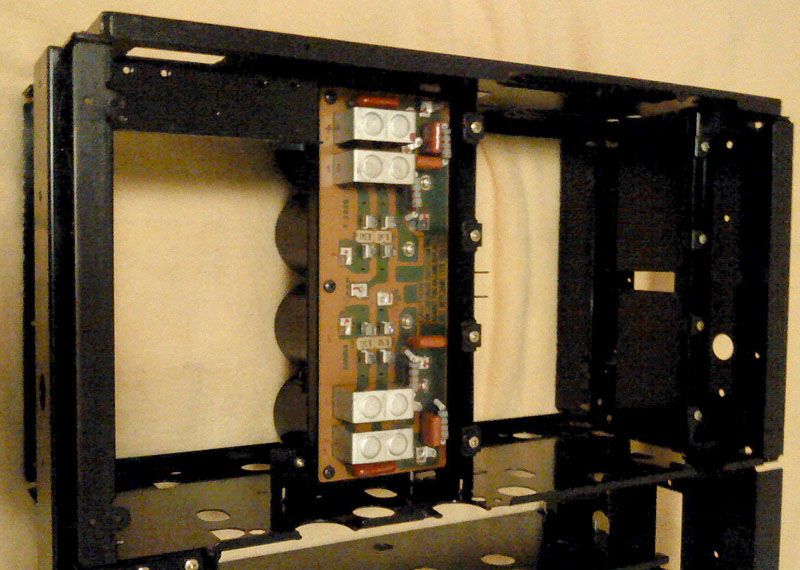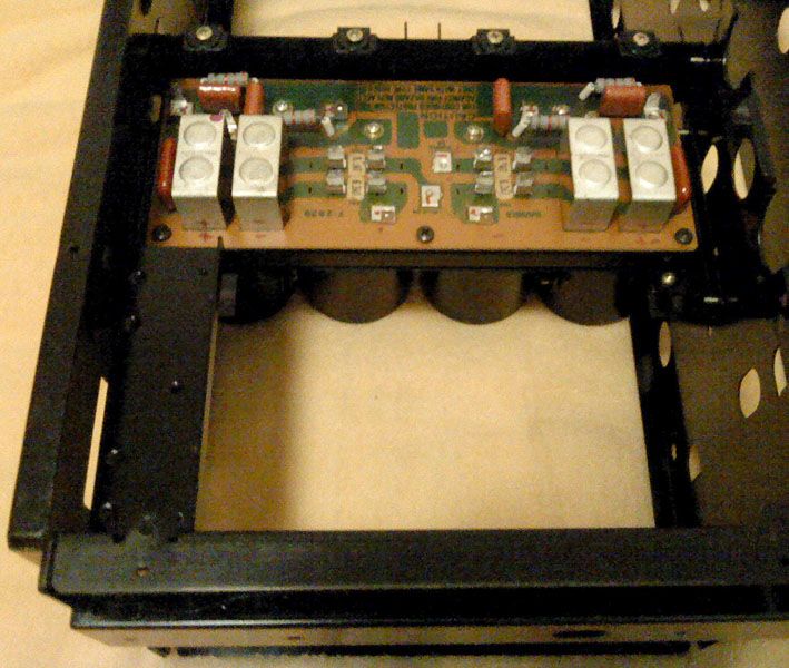 Na kraju, slicno kao i sa sasijom, da se odradi ono sto ja volim nazvati 'saraf-test' - provjera da sve pase na svoje mjesto, da su svi vijci i podloske i matice na broju itd. Ovo uopce nije bio trivijalan posao do sada. Jako velik broj originalnih vijaka je posve neupotrebljiv ili stvarno ruzno izgleda jer ih je pojela kemija goruce plastike, hrdja ili kiselina. Jedan dobar broj je zamijenjen neadekvatnima ili cak kompletno nedostaje. Buduci da zemjene nisu bas lako nabavljive, isao sam na mali kompromis - vijci u unutrasnjosti uredjaja su klasicni 'zuti' a vanjski, kao i svi s kojima se pricvrscuje elektronika, ozicenje ili prekidaci su i dalje crni. Izuzetak od ovog pravila su bijeli vijci za pricvrscenje obujmica za elektrolite, koji su takvi u originalu. Ovdje je za test dodana ploca ispravljaca na kojoj zapravo nema revidiranja, osim prelemljivanja, ciscenja i skidanja (KRIVIH!!!) oznaka napajanja (umjesto da citaju sto im pise na stampi...), sto tek slijedi:
