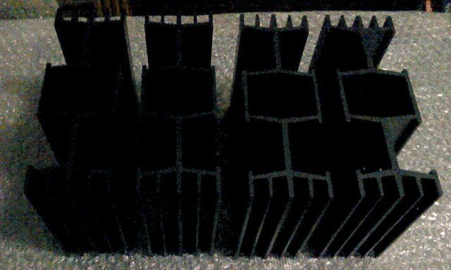 Update: stigli aluminijski dijelovi iz eloksirnice... rastavljena prednja ploca i hladila. Sve skupa je ispalo poprilicno dobro, s obzirom na originalno stanje, napredak u svjetlosnim godinama, iako ne izgleda kao novo (osim hladila). Na prednjoj je ploci bilo par ogrebotina na donjem rubu koje bi zahtijevale jednostavno previse skinutog materijala da se poravnaju, slicno i sa par udubina na prednjoj ploci. Zato je tu vise radila strategija maskiranja problema koliko je to moguce... Slike bas nisu nesto, slikati kvalitetno crno eloksirane dijelove je kao da slikas crnce u tunelu, ali mislim da ce se ipak vidjeti u cemu je stvar...