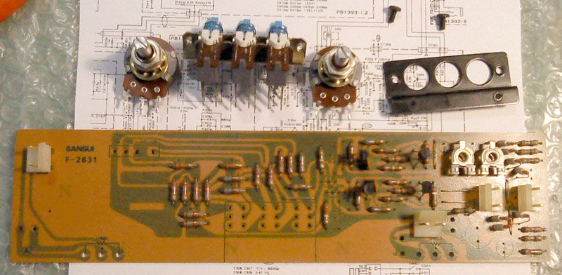 Plocica s ulaznim atenuatorima i elektronikom PP-metara je zacudo nesto veci problem, radi potenciometara i prekidaca. Sve je to na kraju zavrsilo u ultrazvucnoj kadi, i to vise puta. Nakon toga, ispuhavanje, kontakt spray, razrada, ponovno ciscenje i plavi kontakt. Naravno, svi elektroliti idu novi, tu pogotovo nema potrebe za nekakvom ekstravagancijom.