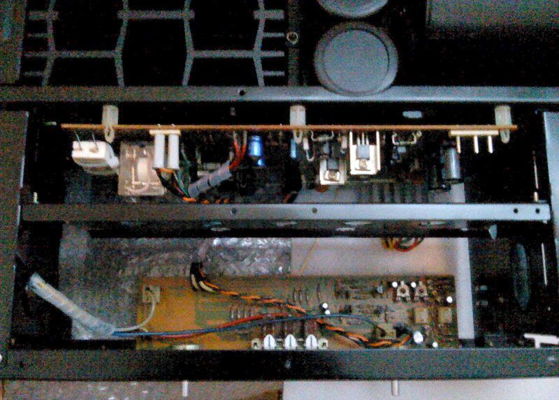 Na slikama se ne vidi stanje od prije, kao ni neki suptilniji popravci koji se prvenstveno ticu ozicenja. Naime, radi toga sto je uredjaj u racku ispod ovog pojacala gorio, neki su vodici mjestimicno osteceni - izolacija izgleda kao da je nagrizena. Zanimljivo je da se to dogodilo i sa originalnim staklo-silikon buzirom kojim su bili izolirani izvodi termistora za zastitu od pregrijavanja. Srecom, uspio sam naci buzir prakticki jednak originalu, pa su tako oba termistora dobila novu izolaciju izvoda...