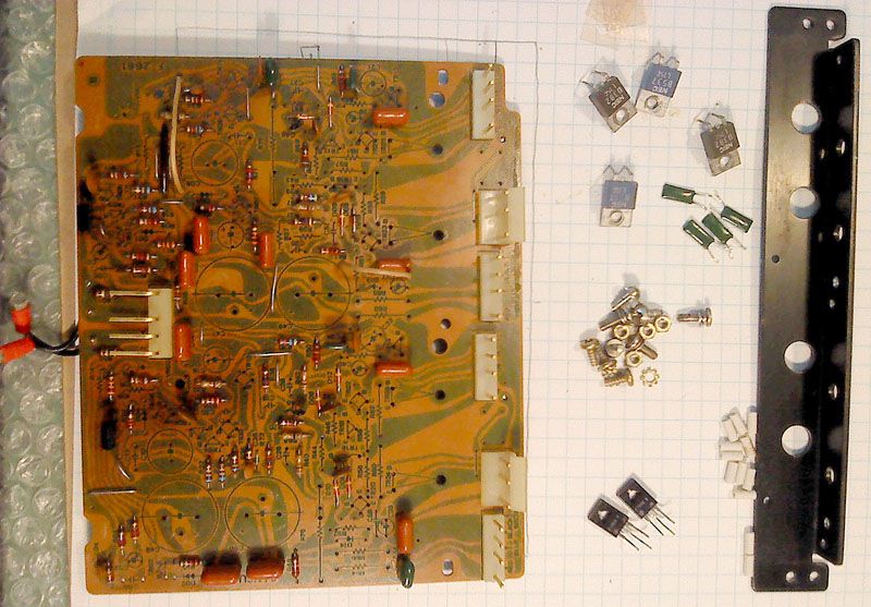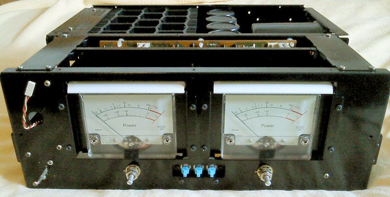 U medjuvremenu se rijesavanje sitnica malo po malo nakupilo u vec poprilicno kompletiran uredjaj. U ovoj fazi, fale konektori za zvucnike (koji ce vjerojatno biti nadomjesteni modernijima ili necim slicnim NOS ali uz modifikaciju radi drugacijeg sistema montaze, to jos nisam odlucio) sa svojim ozicenjem, osigurac (nosac je vec spreman, ali se radi o tzv. 'Americkim' osuguracima, dakle ona veca cijevasta varijanta), dvobojni LED za prednju plocu (Treba biti s 2 pina, sto se pokazalo gotovo nenabavljivim, srecom ima nacina da se tro-pinski spoji tako da ima dva pina), zaruljice za PP-metre, te naravno kompletirana driver ploca. Sve drugo vec ceka gotovo...