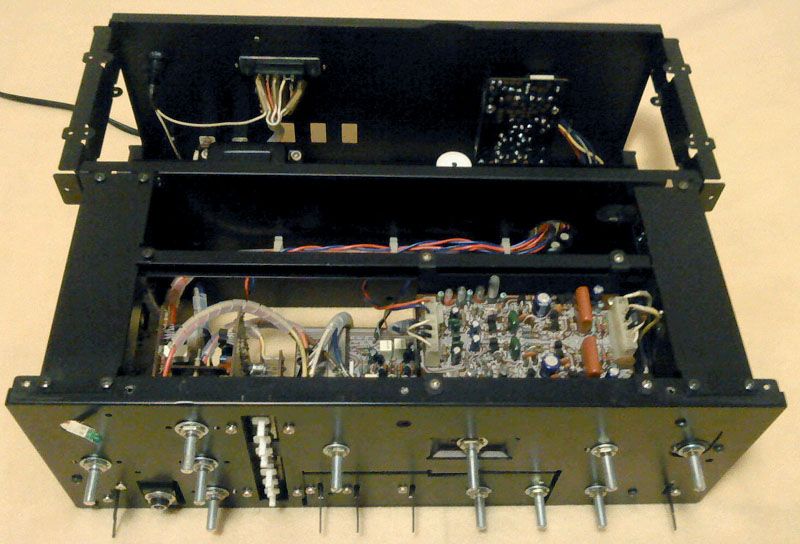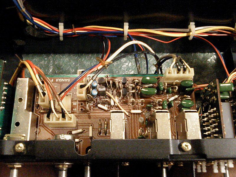 Ovdje se vidi u cemu je stos - ploca s ulazima ima na sebo odmah i preklapanje i u nizu jos 2 ploce s pomocnim kontrolama i prekidacima, kako bi se put signala skratio. Ponovno, tu je par kablova koji su zalemljeni.