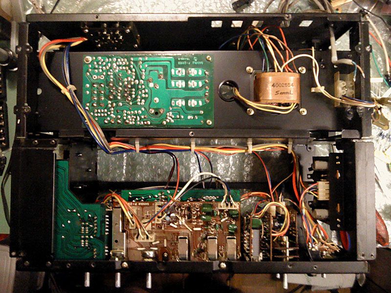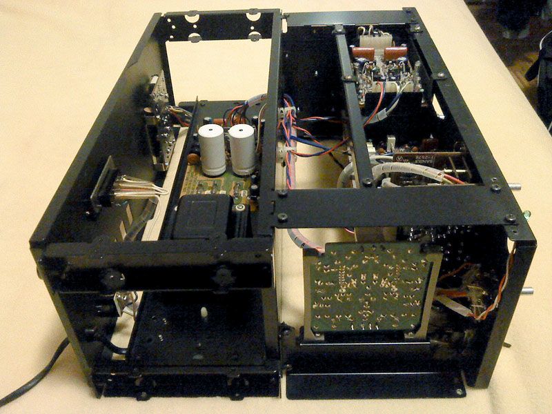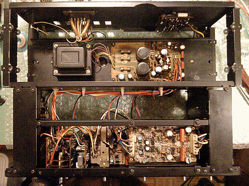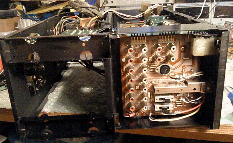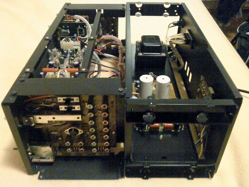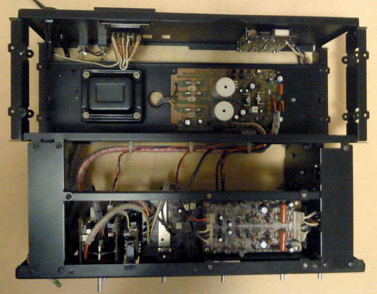 Za pocetak... najprije se sve dokumentira. Sansui servisni manuali su notrorni po ralikama u odnosu na stvarnost - pogotovo za vrh ponude koji je radjen u malim serijnama i cesto s posebnom paznjom u prelasku na novije i poboljsane verzije. U ovom slicaju pocinjem s vec skinutim dijelovima kucista i ogoljelom sasijom, najprije odozgora:
