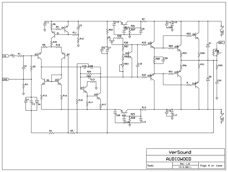 Ovo je poboljsana verzija, s prepolovljenim izoblicenjem, iako su izoblicenja i prije bila vrlo niska. Nisam poslusao u zivo jer pojacalo nije vise kod mene ali cu probati na mom slijedecem izlaznom stupnju. Spremam se na mjerenja novog izlaznog pojacala, NFET kaskoded LTP i triple izlazni stupanj s ThermalTrak izlaznim Onsemi tranzistorima. Kada zavrsim mjerenja, ako je netko zainteresiran, otvoriti cu novi thread. Paralelna kombinacija R24//C23 je sada spojena na Q95 emiter umjesto na Q9 kolrktor. Na taj nacin je smanjeno opterecenje VASa. Nisu mjenjane vrijednosti elemenata prema prvoj verziji.